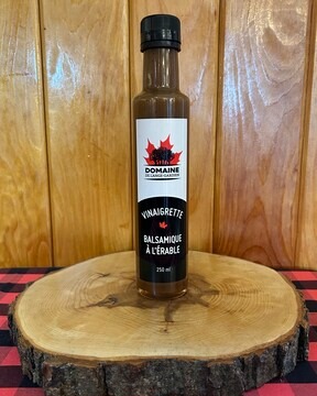 Ingrédients: huile de canola, sirop d'érable, vinaigre balsamique, moutarde (eau, graines de moutarde vinaigre, sel, métabisulfites de sodium, huile de citron) sel, ail, épices