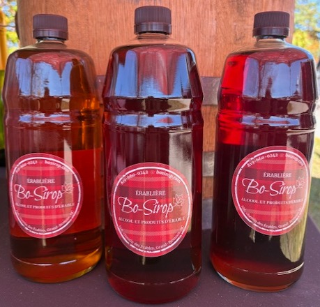 Our syrup is certified organic by the certifier Ecocert Canada. We have certification for both bulk and retail syrup. Our syrup is available in the following categories : Golden (delicate taste), Amber (rich taste), Dark (robust taste). The retail syrup is specially selected for it's good taste from our large production. We sell our syrup in individual cane or in box of 8 canes (1 gallon). Conservation 18 months.