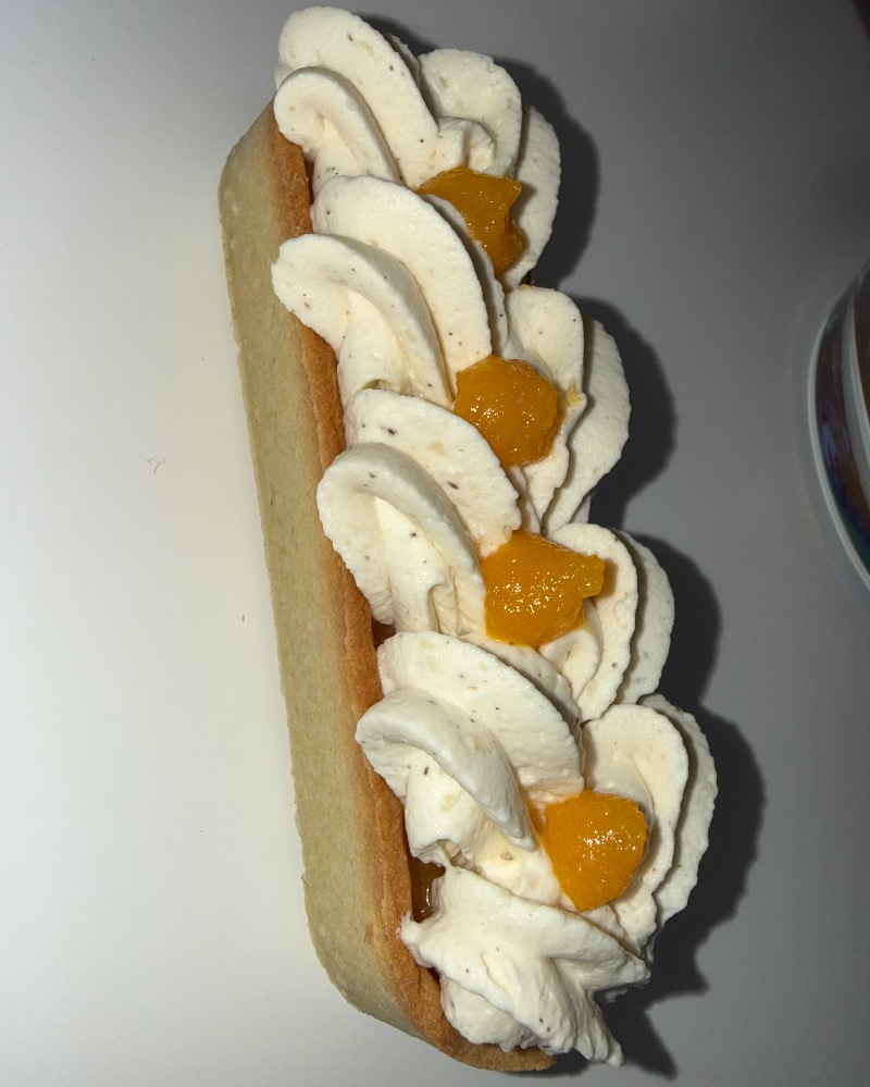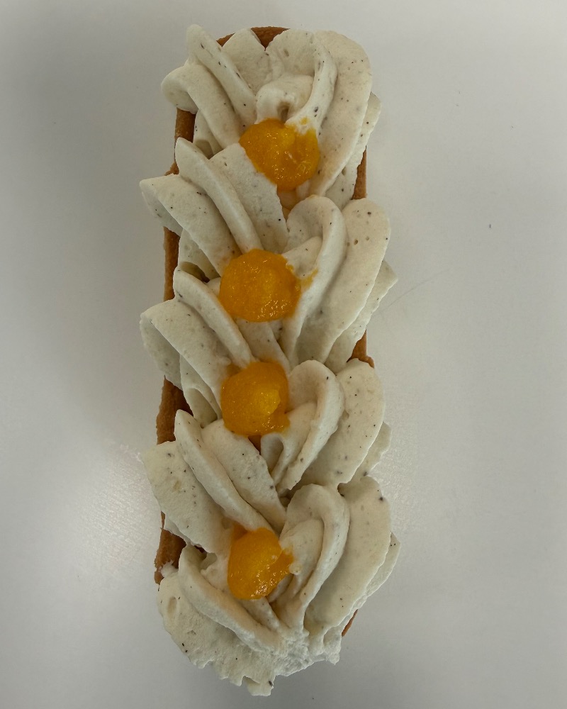 Homemade shortcrust pastry, mango cream, fresh coriander, vanilla creamy ganache.