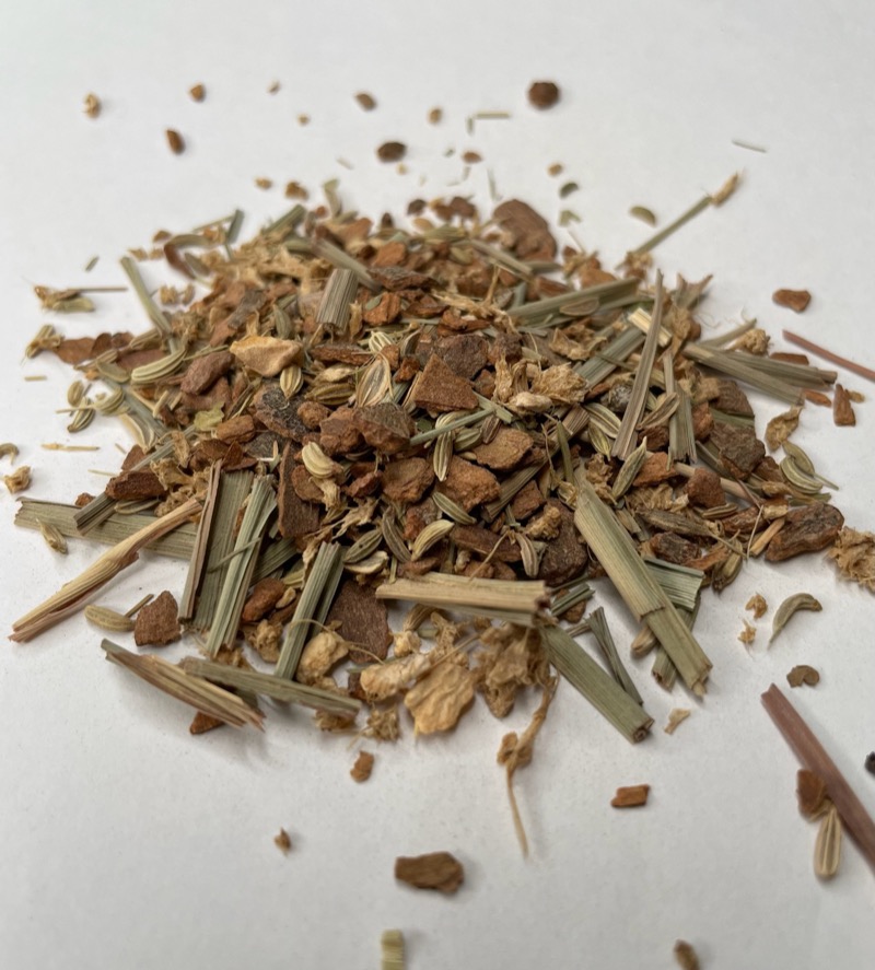 An excellent after meal that comforts your digestive system at any time of the day. Its sumptuous taste with pronounced notes will revive your taste buds. The ingredients have been carefully combined to maximize their active ingredients on the intestinal system and soothe your digestion. Infuse 5g in 20cl of simmering water for 4 minutes. Leave to cool, and enjoy warm. Ingredients: Fennel seed, Chopped ginger roots, Lemongrass stalks, Parsley leaves, Crushed cinnamon bark
