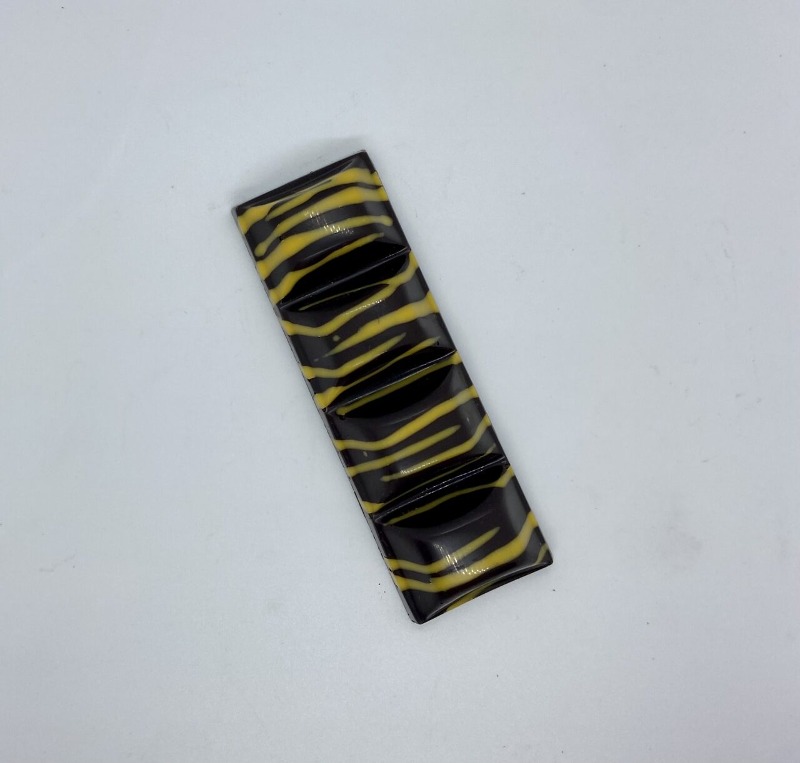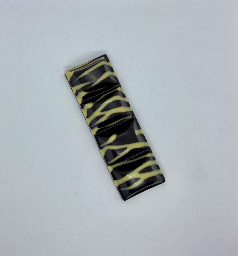 Chocolat noir 70% avec intérieur de pâte de fruit. Framboise, mangue ou fruit de la passion