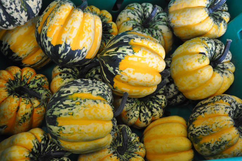 Courge Delicata sucrée !! Parfait seul ou pour la pâtisserie ! Une courge d'hiver Carnival (delicata) de taille moyenne. Belle et douce avec une peau comestible.
