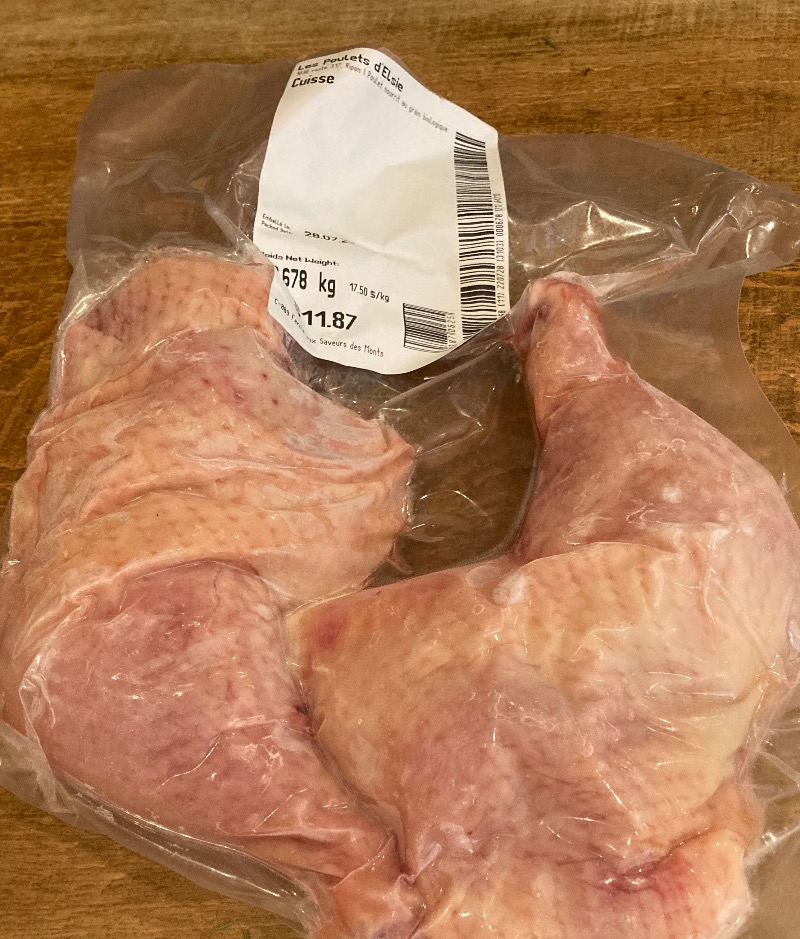 2 cuisses de poulets. Les poulets d’Elsie, un projet père fille. Nourrit au grain biologique.