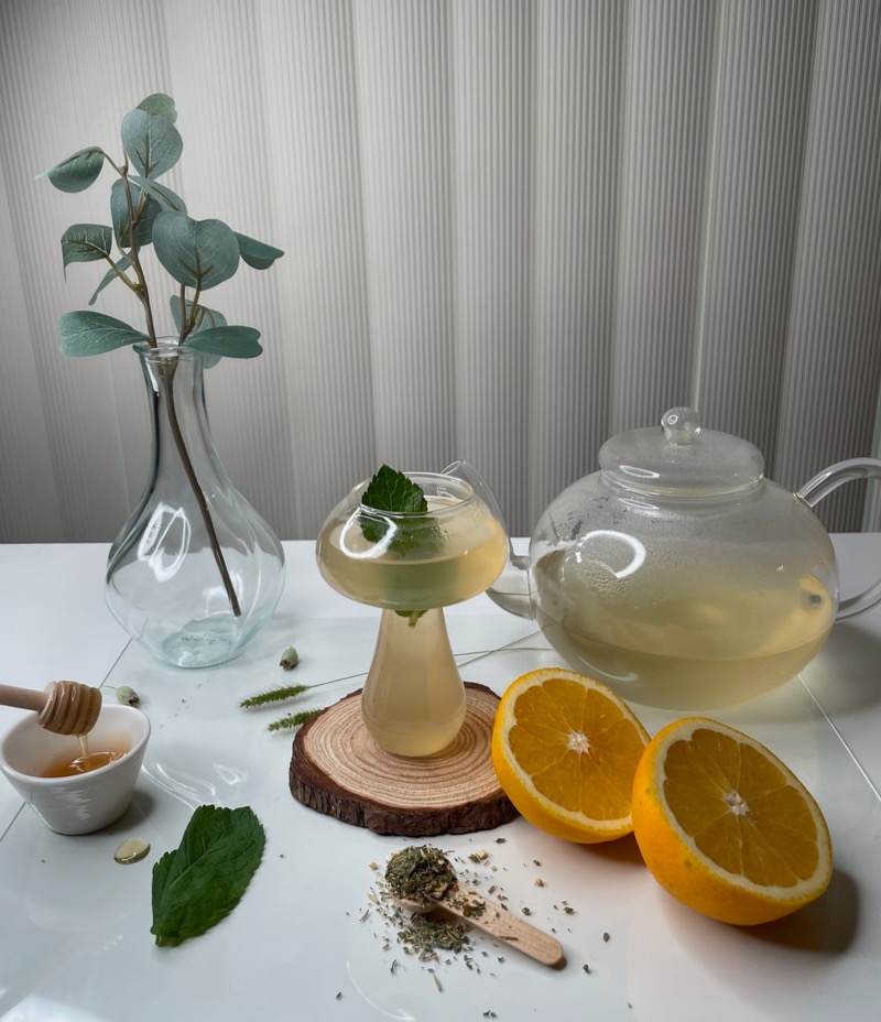 Écorce d’orange Feuilles de romarin Feuilles de menthe poivrée Savourez une tisane vibrante qui éveillera vos sens avec l’écorce d’orange zestée, apportant une note d’agrumes rafraîchissante. Le romarin, avec son arôme terreux et boisé, offre une profondeur subtile à chaque gorgée. Complétant cet ensemble, la menthe poivrée dynamise le palais avec sa fraîcheur mentholée revigorante. Cette infusion harmonieuse vous transporte dans un jardin méditerranéen ensoleillé, offrant une expérience gustative vivifiante et équilibrée à savourer à tout moment de la journée. Infusez pendant 4 minutes 5g dans 20cl d’eau frémissante. Laissez refroidir, et déguster tiède.