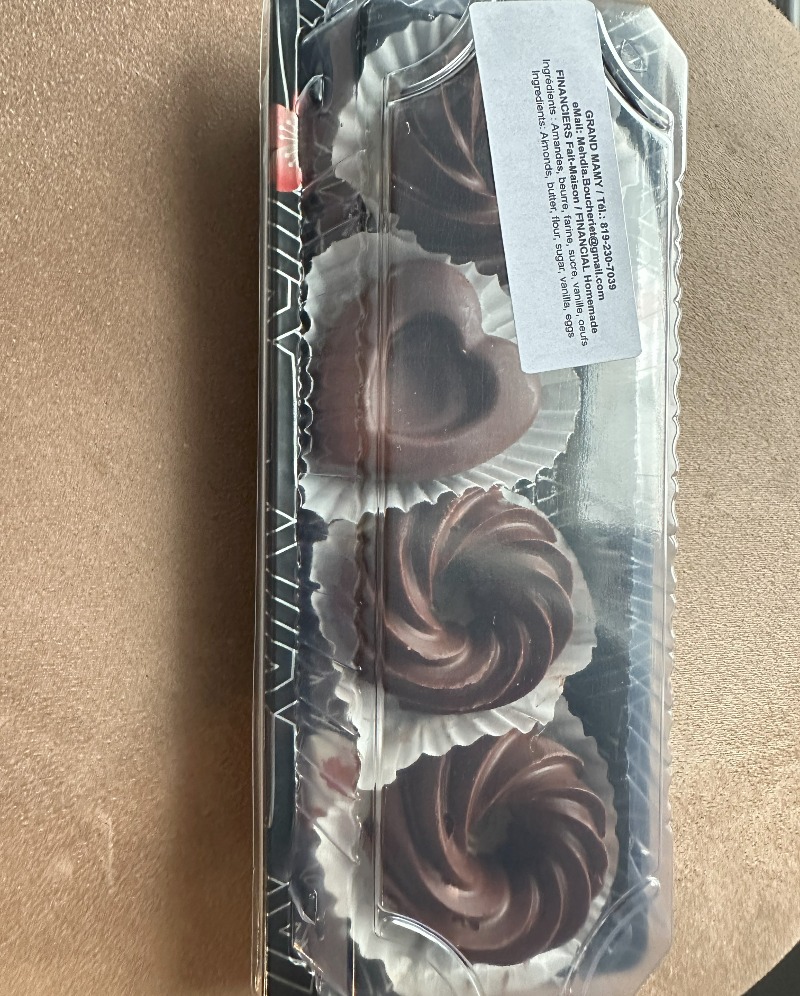 Découvrez notre délicieux Financier, une création faite maison avec amour et passion par Grand-Mamy. Cette recette du terroir français, mise en valeur par le savoir-faire de Grand-Mamy, est une véritable invitation à la gourmandise. Nos Financiers sont confectionnés avec des ingrédients de première qualité, tels que des amandes, du chocolat, du beurre, de la farine, du sucre, de la vanille et des œufs. Chaque bouchée de ces délices moelleux vous transporte en France avec leurs saveurs exquises. De plus, grâce à notre méthode de préparation artisanale, nos Financiers restent croustillants pendant plusieurs mois lorsqu'ils sont conservés au frais. Appréciés au petit déjeuner ou à tout moment de la journée, ces petits gâteaux sont parfaits pour démarrer la journée avec une touche de douceur.