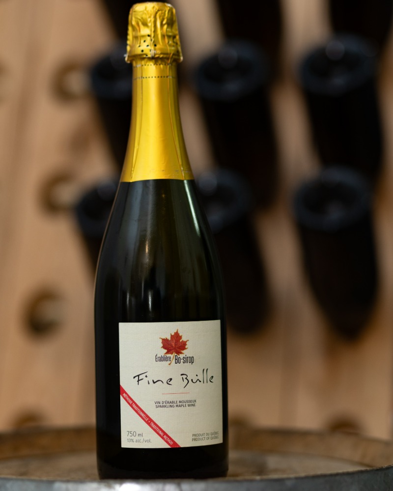 Mousseux d'érable élaboré selon la méthode traditionnelle avec une deuxième fermentation en bouteille pendant plusieurs mois. 13% d'alcool. Très festif. Les amateurs de bulles en raffole.