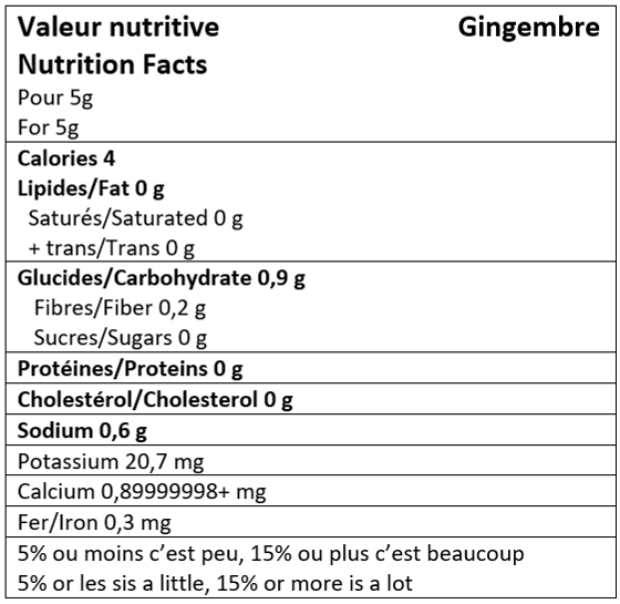 Gingembre local lyophilisé