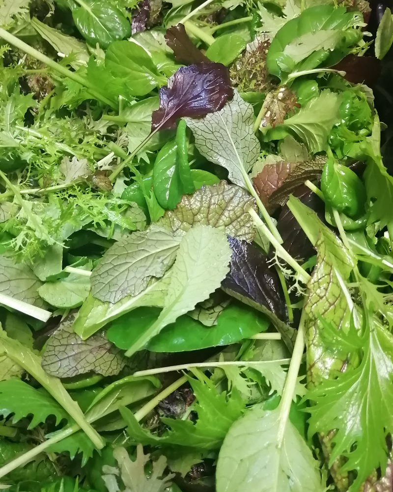 Mélange de jeunes feuilles de crucifères assez doux avec une petite touche piquante. Mélange de texture et de couleur. Pour faire une belle difference du mélange de laitues.