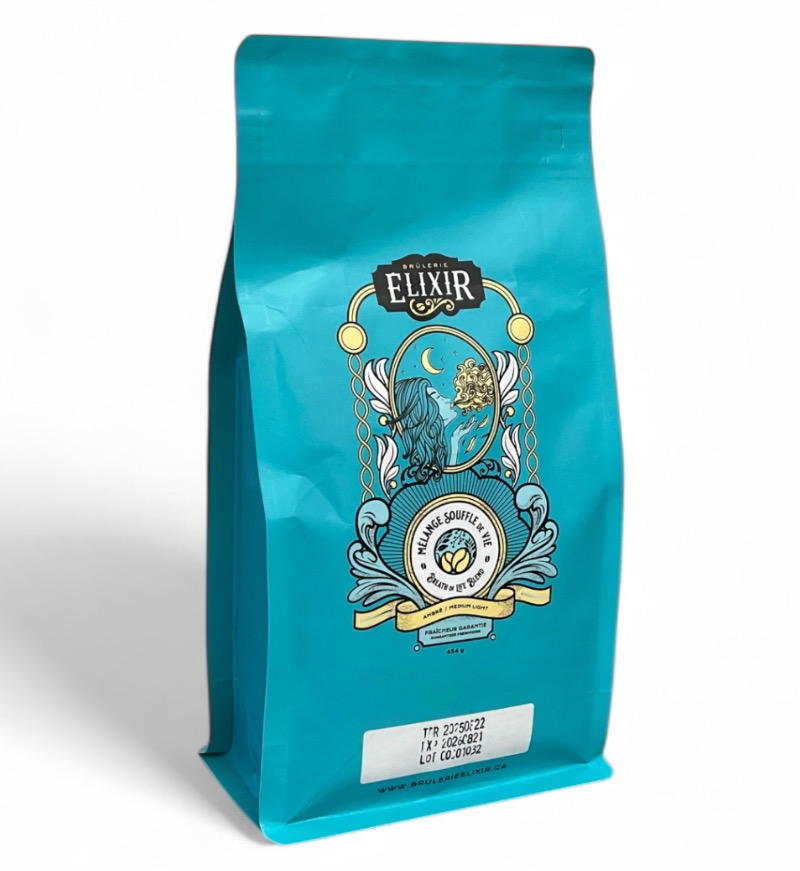 Café en grain, certifié 100% équitable et biologique. Torréfié en suivant une recette propre à la Brûlerie Élixir, ce mélange cherche à accentuer le profil unique des grains de café soigneusement sélectionnés pour vous offrir une tasse de café exceptionnelle. Préparation suggérée : dans le cône en papier d%u2019une cafetière à filtre, verser 250 ml d%u2019eau préalablement bouillie sur 16 g de café moulu. Dégustez-le noir, avec du lait, de la crème ou encore un peu de sucre. Vous pouvez varier les quantités suggérées selon vos goûts. Degré de torréfaction: Ambré Poids: 454 g Lieu de torréfaction: Gatineau, QC
