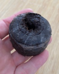 Pastille de tourbe. Simplement ajouter de l'eau et semer les graines.