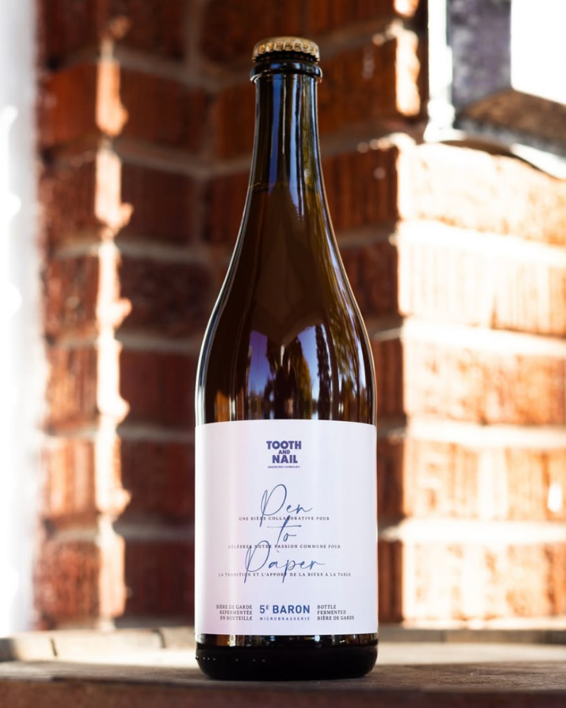 Aujourd’hui, nous sommes heureux de vous présenter Pen to Paper, une bière de garde à 7,5 %. Elle est le fruit d’une collaboration menée sur plusieurs mois avec nos amis de tooth and nail beer ! 🍺 Notes de la brasserie : Au nez, on décèle des parfums de poires caramélisées et de biscuit. La texture en bouche est soyeuse. Côté saveurs, on retrouve du caramel mou, de la brioche, ainsi que les esters (notes de poire) créés lors de la fermentation. La finale est légèrement amère, avec une carbonatation vive et une petite chaleur alcoolique bien présente.