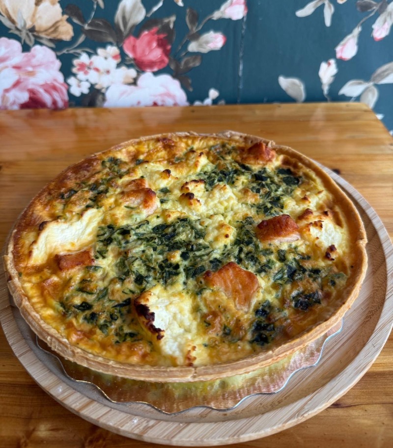 Saumon, fromage ricotta, épinards, oeufs, creme, lait, sel, poivre, pâte feuilleté.