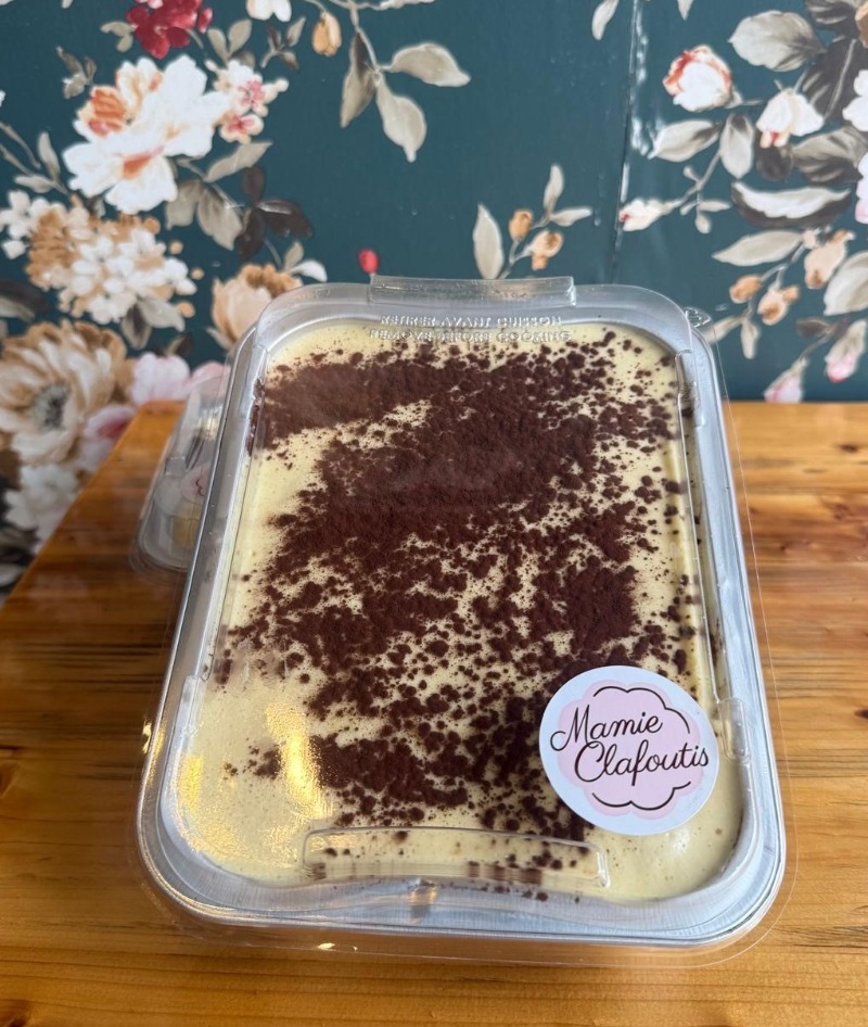 oeufs, sucre, macarpone, marsala (alcool), cacao, gelatin, biscuits doigts de dame.
